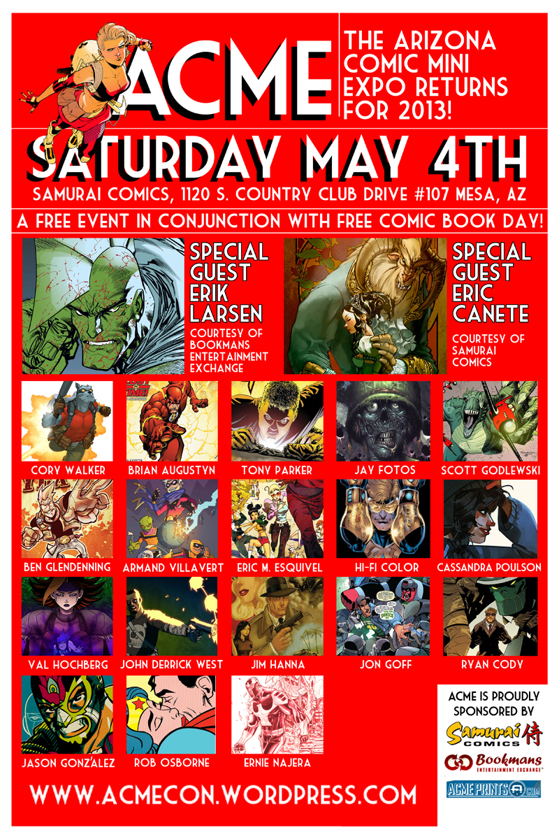 This Saturday is the second annual Arizona Comic Mini Expo! I’ll be there alongside an insanely great guest list! Erik Larsen, Eric Canete, Cory Walker and so many more!